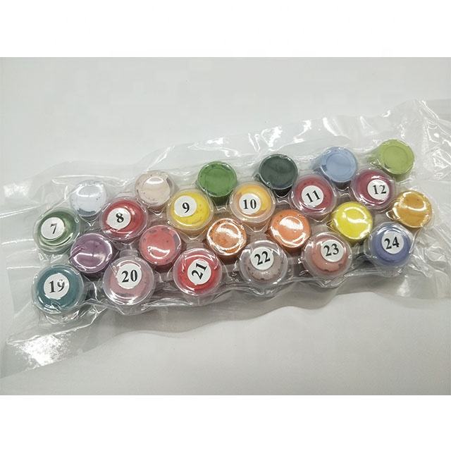 Embalaje estándar de una pieza con 3 pinceles, 2 ganchos, 1 pigmento de embalaje al vacío, 1 pintura de lienzo con marco.