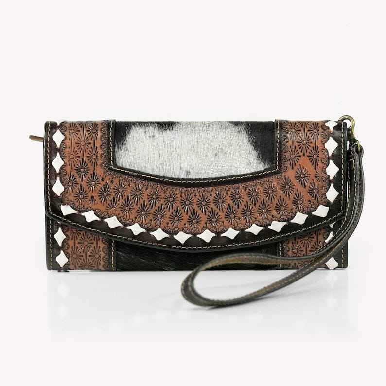Sunset Serenade Trifold Wallet Long Western Cowgirl Appeal Cierre abierto Hecho de cuero de vaca Tooled Saddle Sac Leather