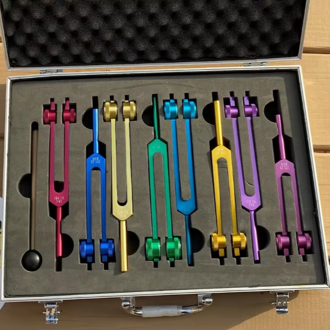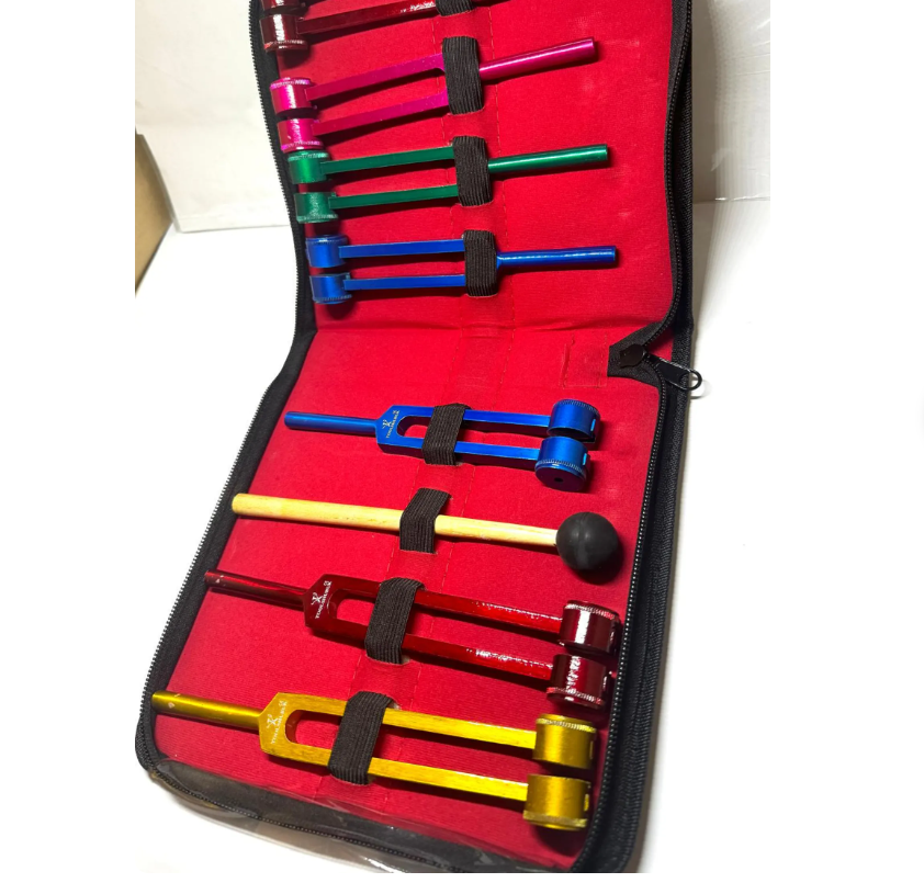 Juego de diapasones de chakra Sunshine, diapasones de chakra curativos con martillo pesado, de colores + estuche.