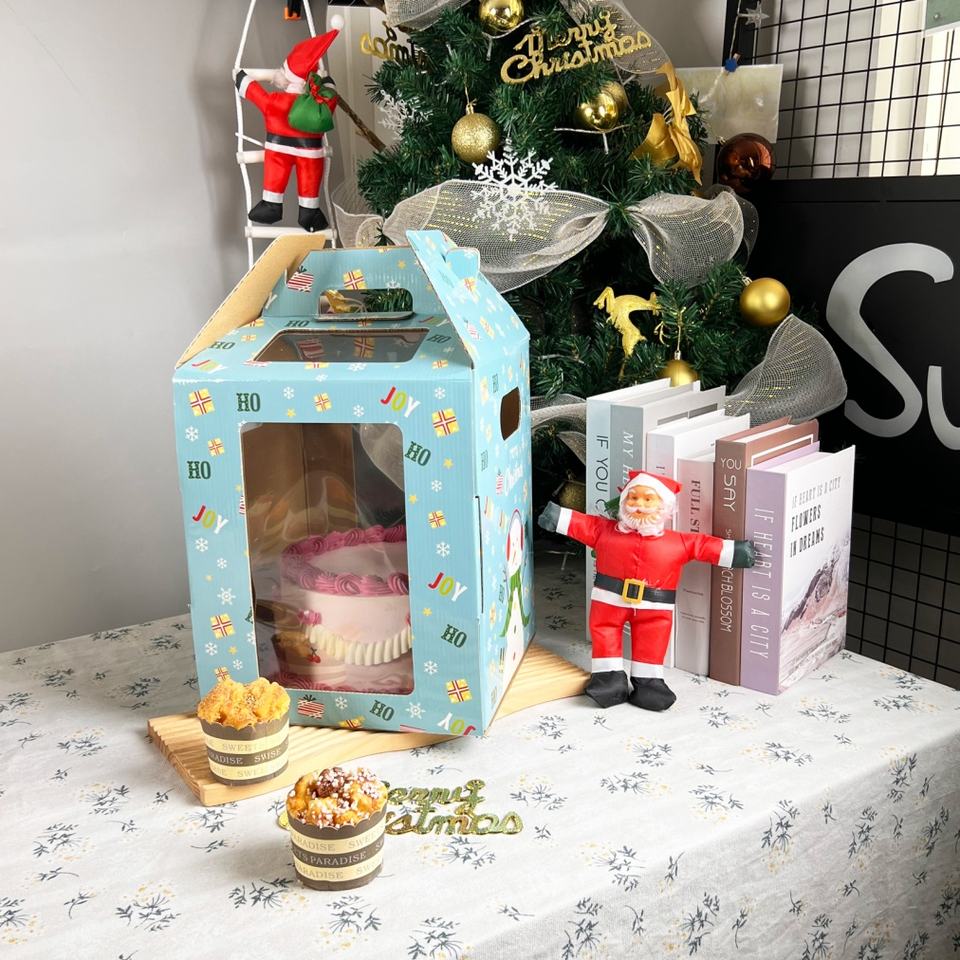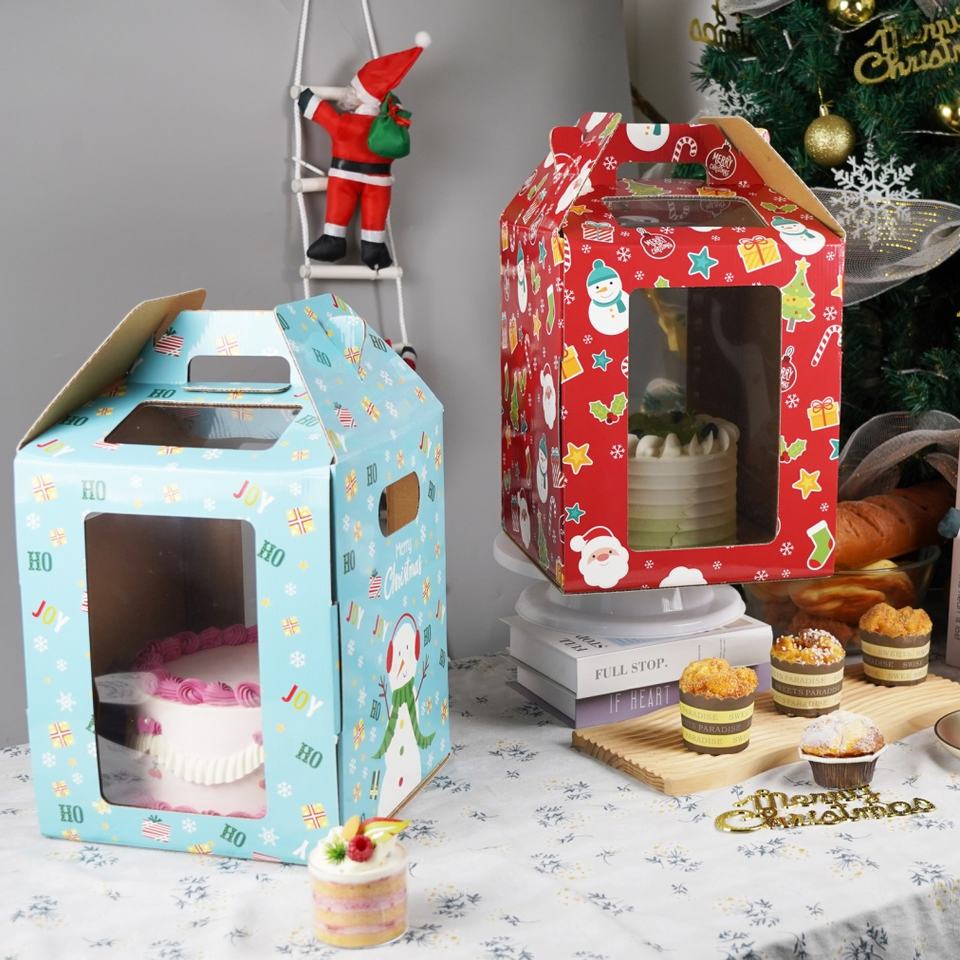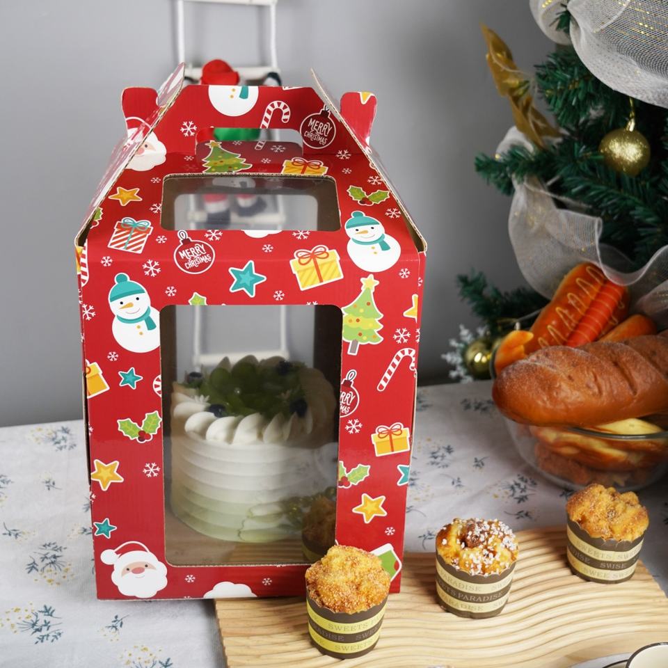 Caja de Galletas Navideña Biodegradable de Lujo con Ventana Transparente y Asa, Empaque de Lujo Perfecto para Postres