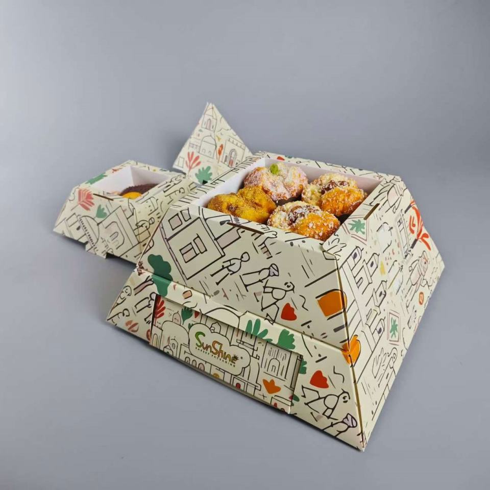 Caja de Embalaje de Alimentos de Cartón Reutilizable con Forma de Pirámide y Logotipo Personalizado Sunshine para Comida para Llevar, Catering, Pan, Postres y Pastelería