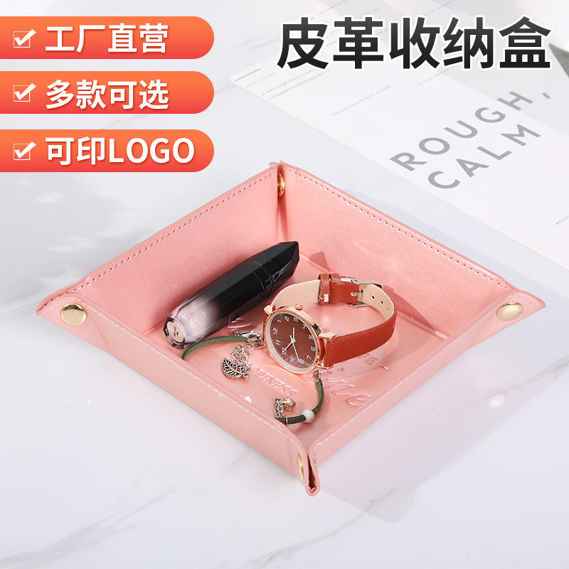 Caja de Almacenamiento Plegable de Cuero Sunshine, Cuadrada, Rosa, Naranja, Marrón, Organizador de Cosméticos y Joyas, para Escritorio, Entrada, Soporte para Llaves de Coche