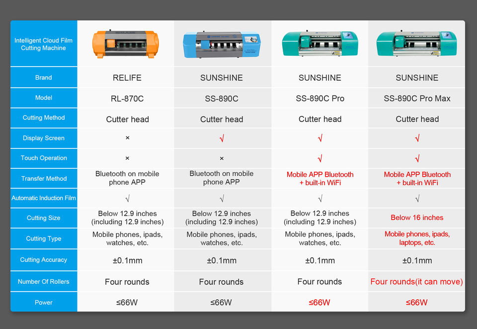 Sunshine SS-890C Pro-máquina de corte de película en la nube inteligente, multifuncional, para películas frontales/traseras de teléfonos de menos de 12,9 pulgadas