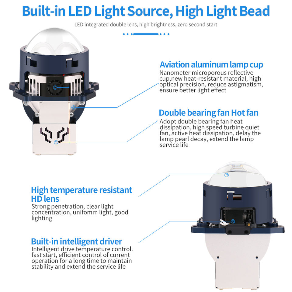 Bombilla de Faro Proyector Bi-LED H4 Sunshiny, 1000m+ de Brillo, Refrigeración con Doble Ventilador, Aleación de Aluminio Duradera, 3 Pulgadas, Mejora de Iluminación para Automóviles