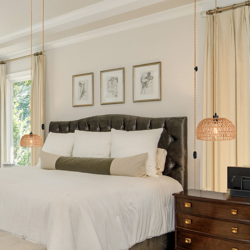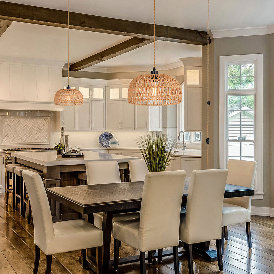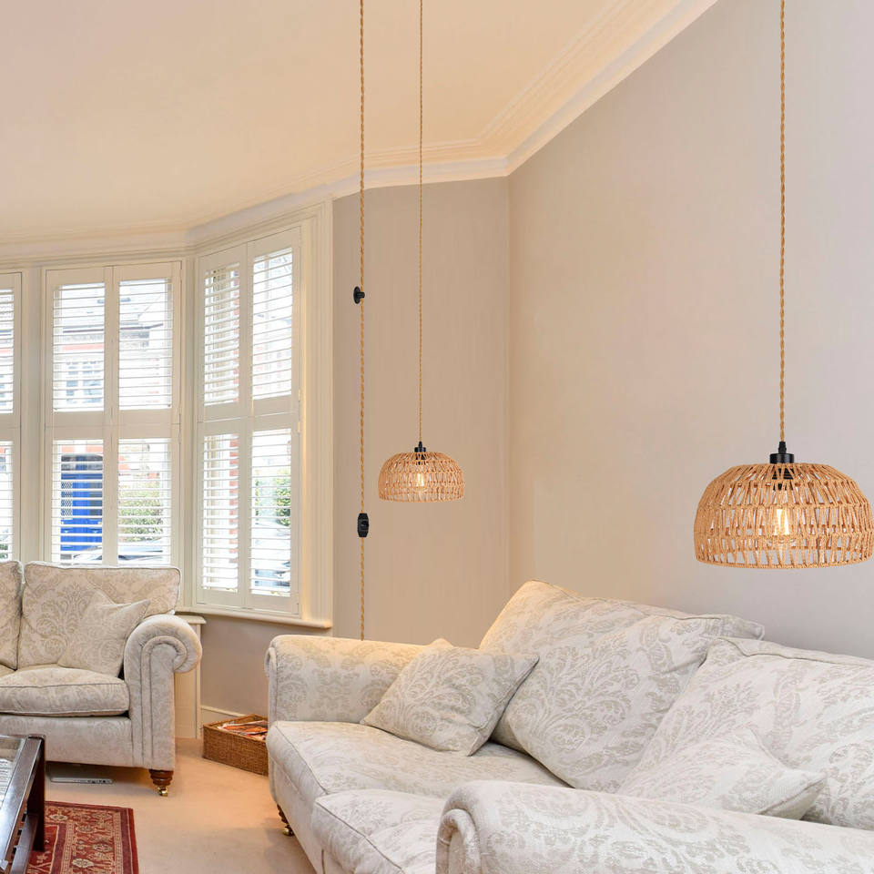 Lámpara colgante de ratán tejida Sunsir, iluminación colgante de cuerda de cáñamo para comedor