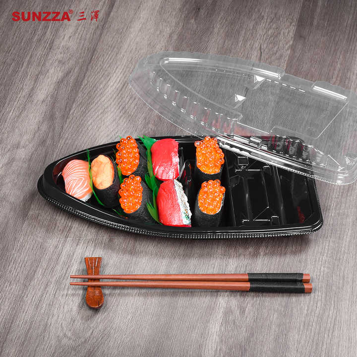 Sunzza paquete al por mayor desechables negro materiales para mascotas de gran tamaño fiesta/restaurante sacar para llevar Barco de plástico para sushi