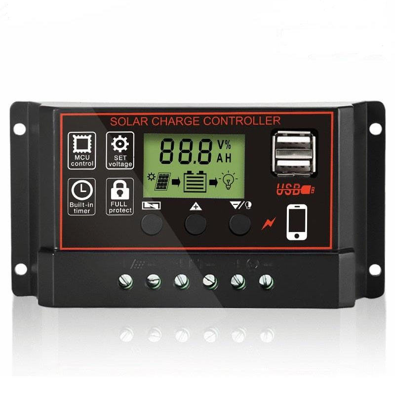 SuoRui-controlador de carga Solar PWM 12 24v, Panel Solar, regulador de carga con temporizador de carga con pantalla Lcd, controlador de carga Mppt