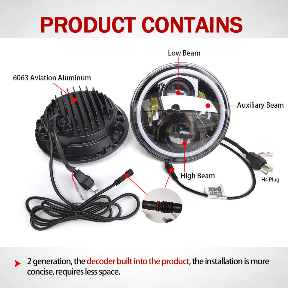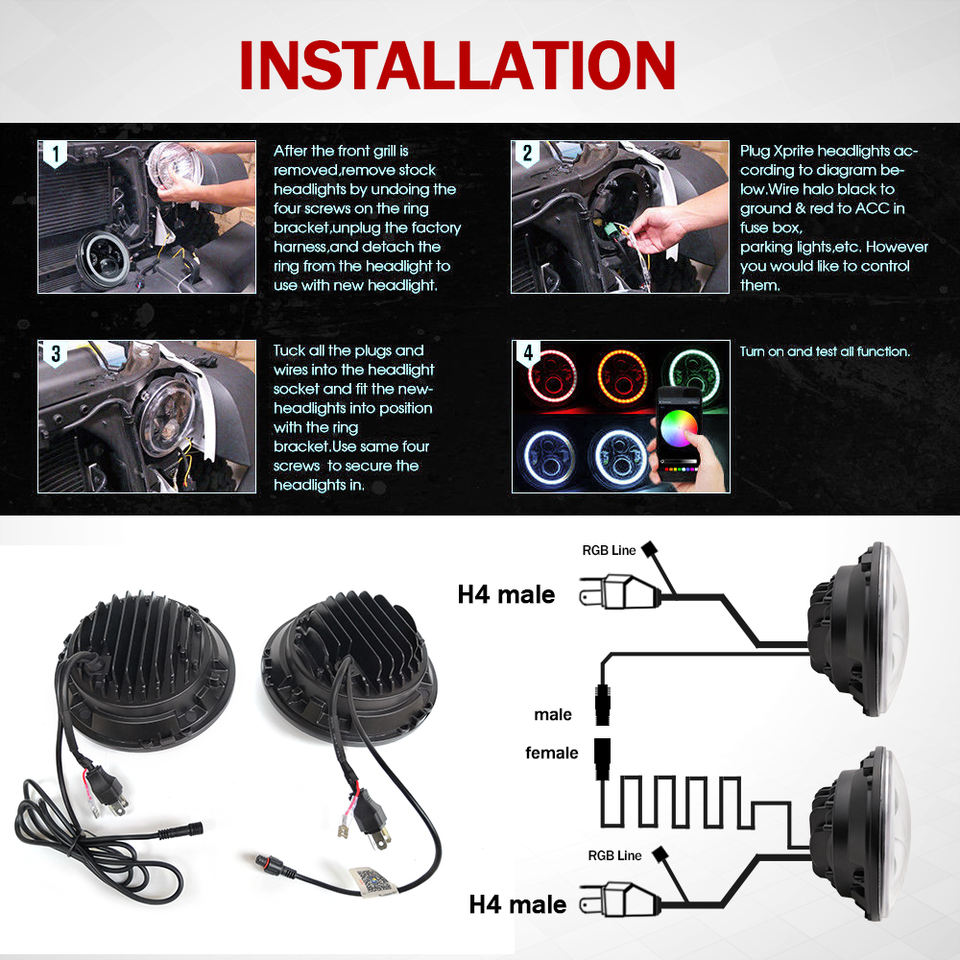 Nombre del producto:Ángulo ojo RGB 7 pulgadas LED faro conversión para motocicleta y camión