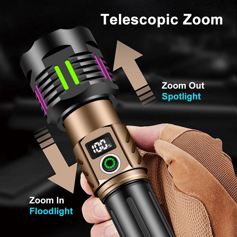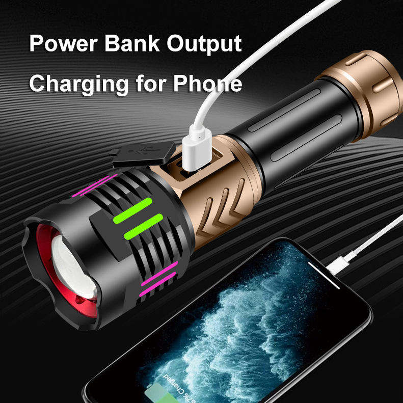 Linterna de Tira Fluorescente con Pantalla Digital USB, Banco de Energía de 30W, LED de 1000M, Luz Flash de Emergencia para Exteriores