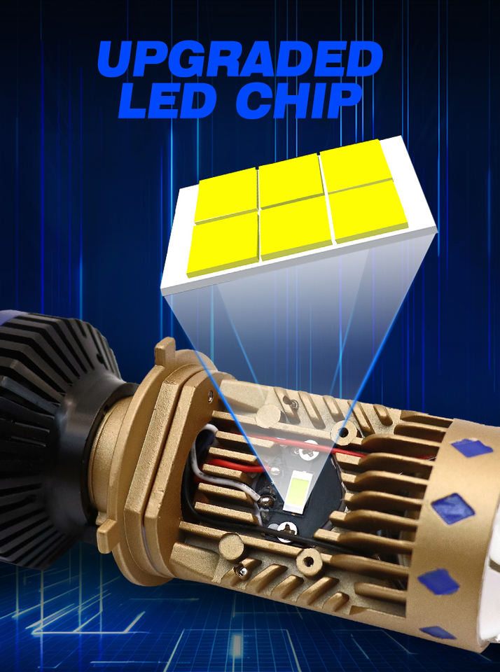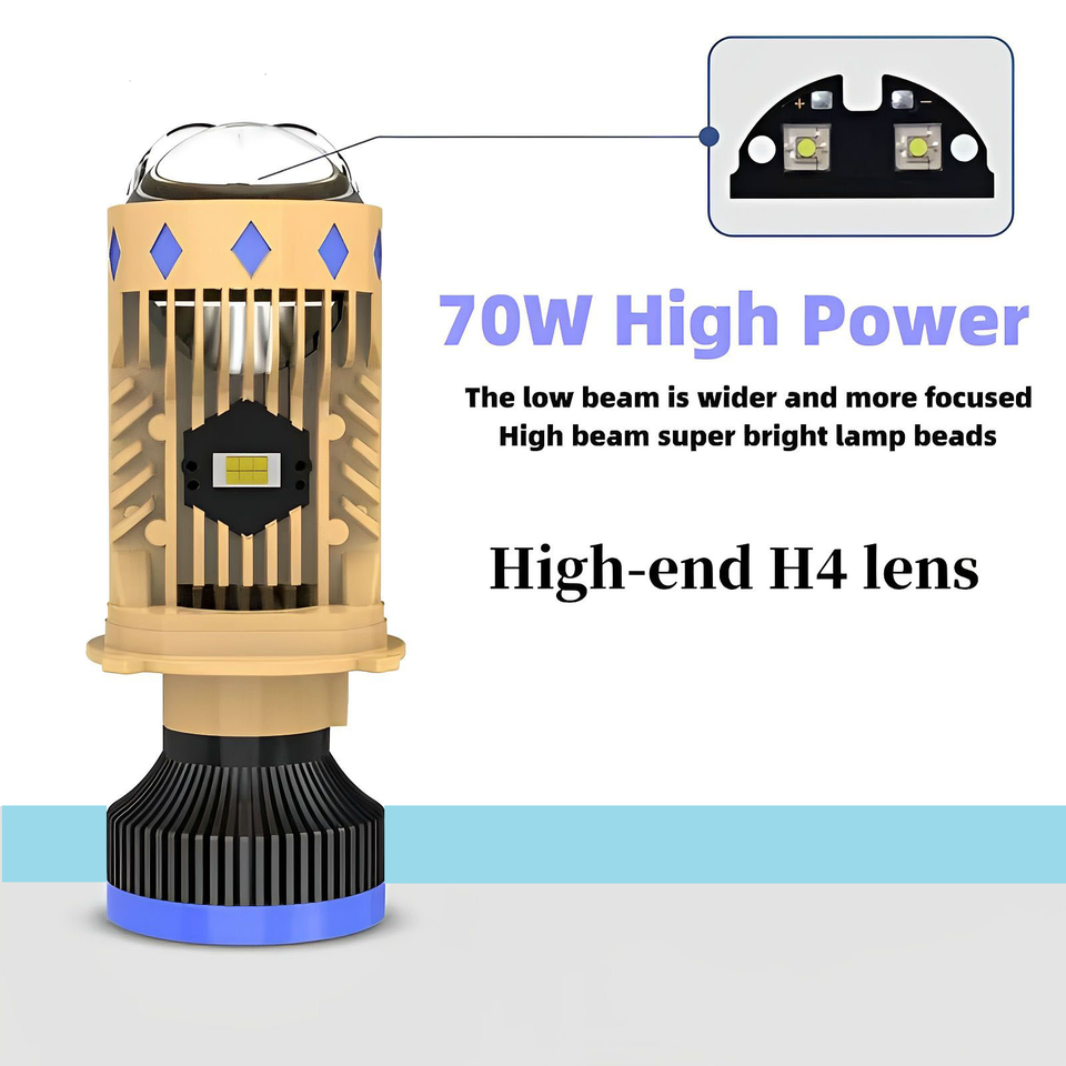 Mini Proyector LED Súper Brillante, Bombilla LED para Faros Delanteros T8 H4 de 70 W con 3 Lentes y Luz Láser