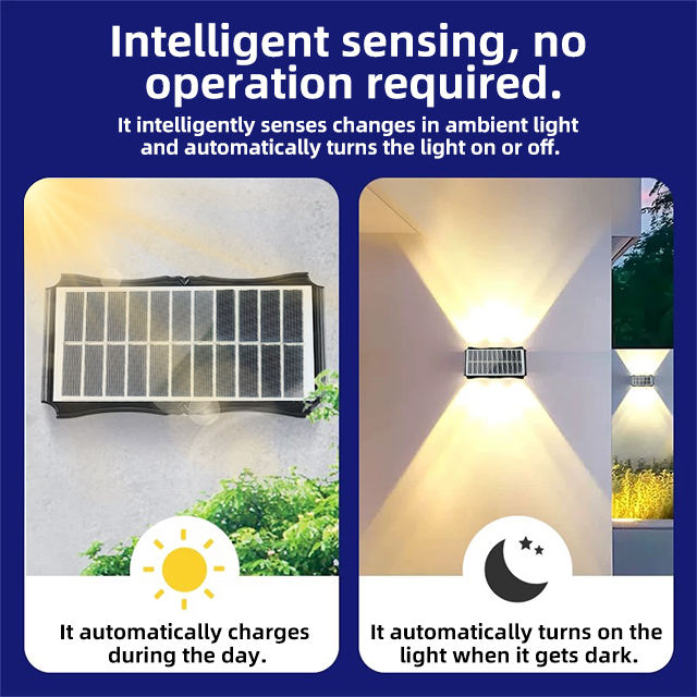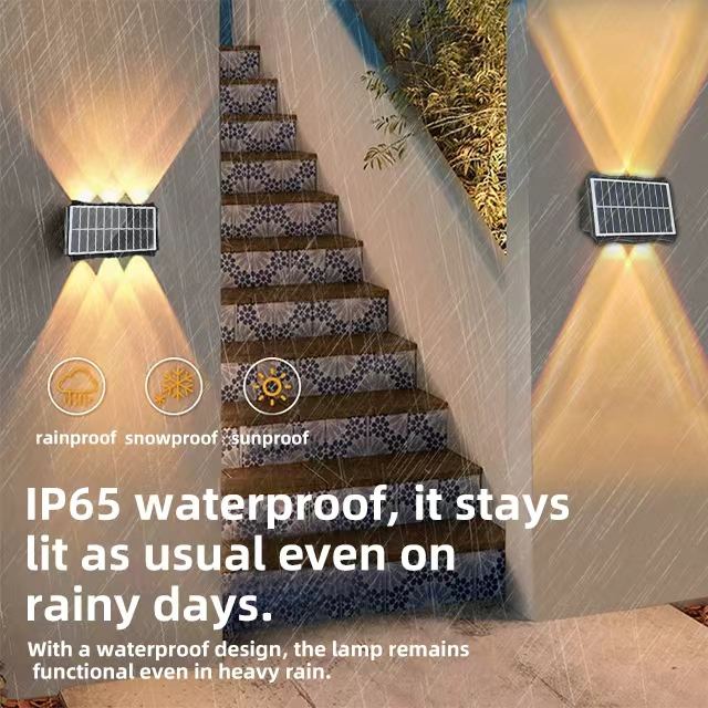 Lámpara Solar LED de Pared Súper Brillante, 6 LED, Iluminación Superior e Inferior, ABS, IP65, Impermeable, Doble Cara, para Jardín, Patio, Camino, Decoración