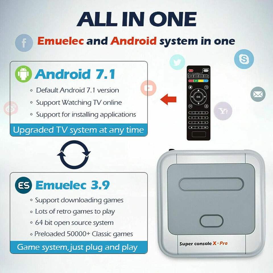 Super Console X Pro Mini TV Box Reproductor de Videojuegos Inalámbrico 2.4G con Más de 50,000 Juegos Retro Compatible con PSP PS1 DC N64 Tipo de Enchufe EE. UU.