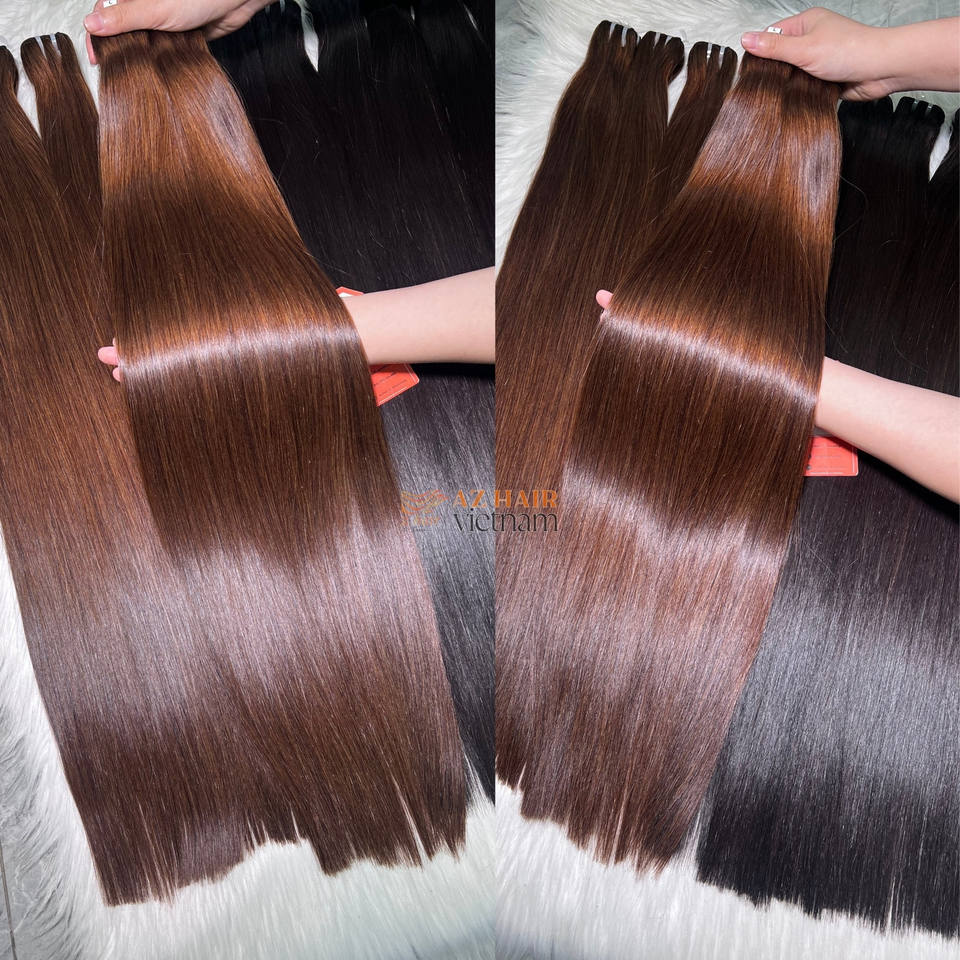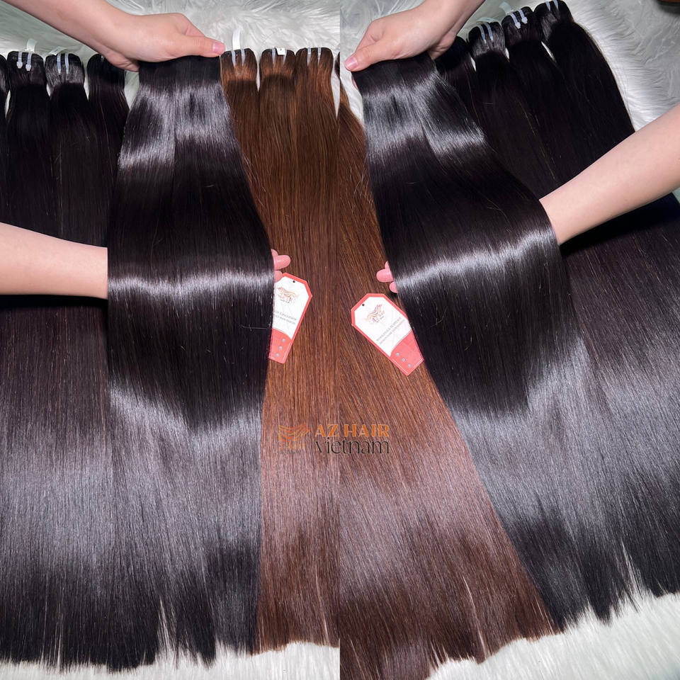 Extensiones de Cabello Humano Natural Negro Marrón Liso Espejo Remy Súper Doble Trama, 100% Cabello Virgen Vietnamita con Doble Trama a Máquina