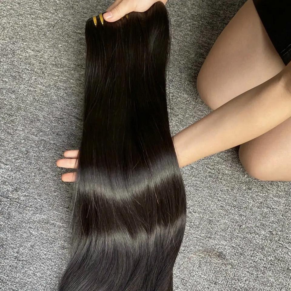 Extensiones de cabello humano virgen súper doble dibujado Paquetes de cabello crudo de alta calidad Negro Liso-Donante único