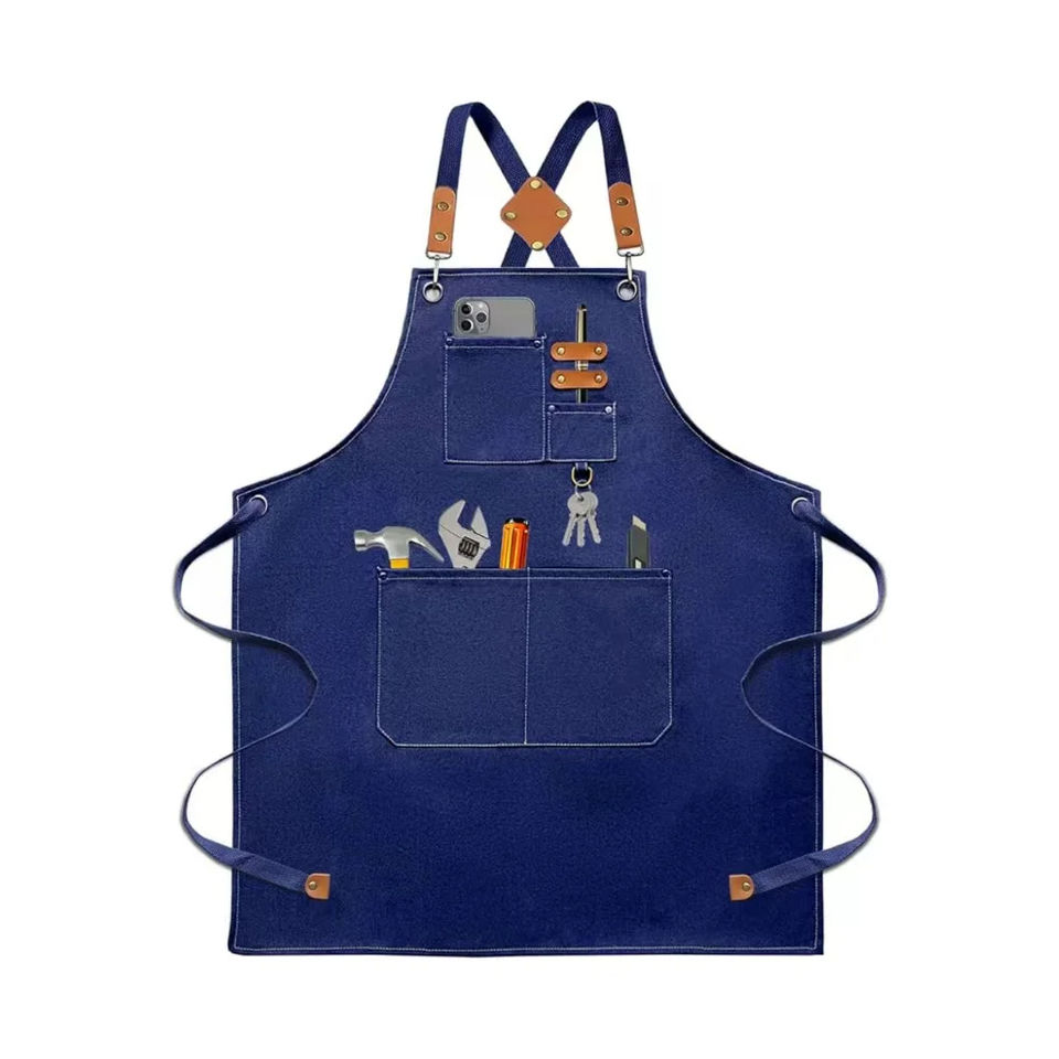 Delantal de algodón súper duradero para mujer/hombre ajustable lavado azul Jean Denim diseño jardín limpieza cintura con bolsillos reutilizable