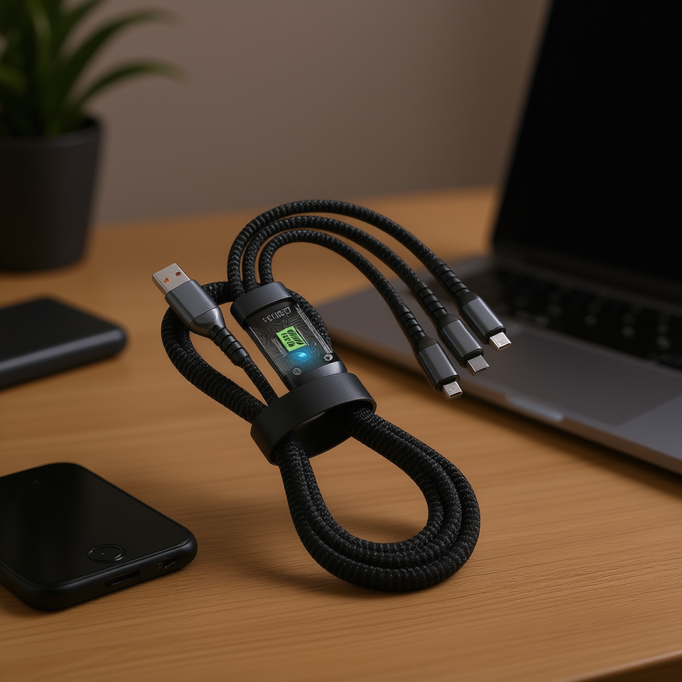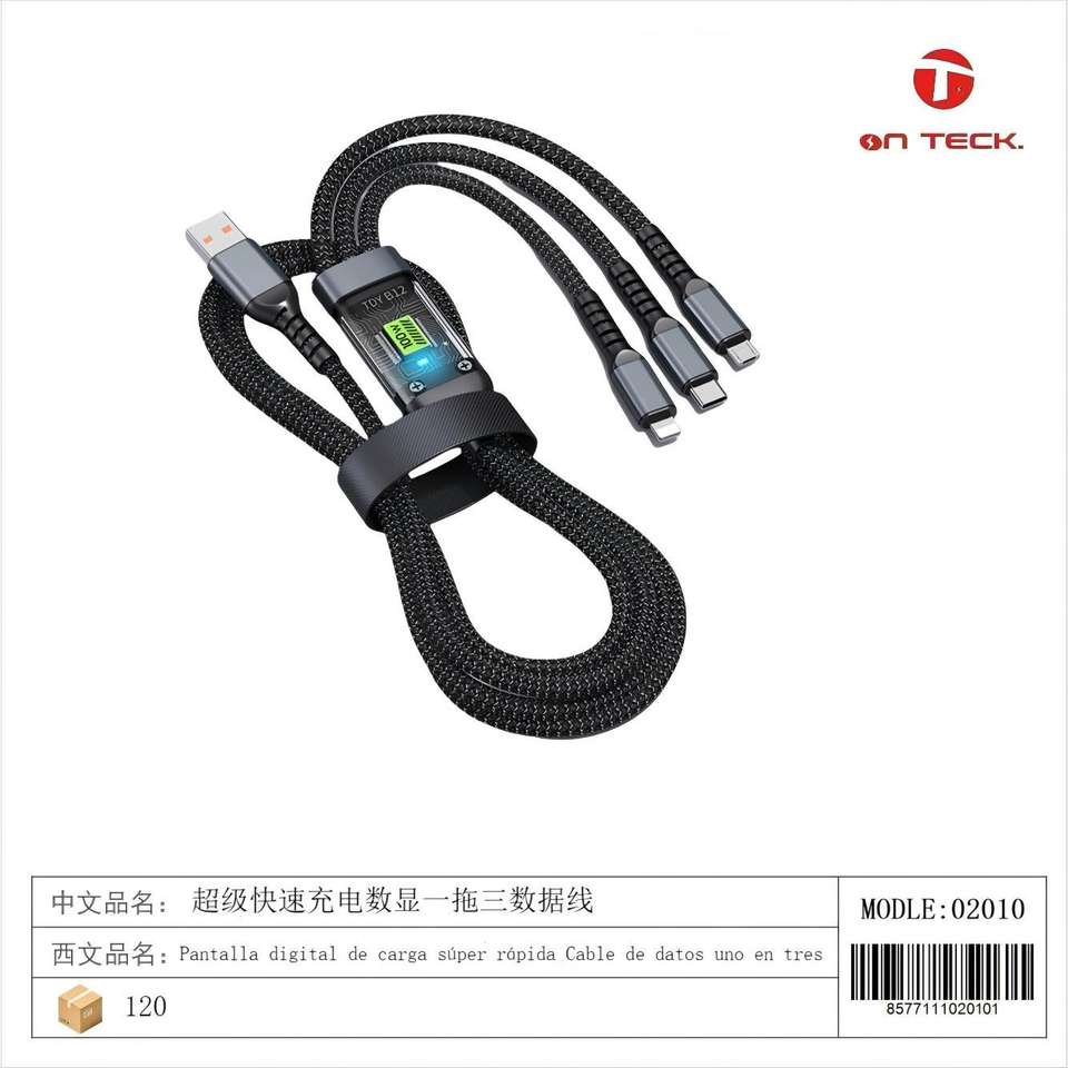 Cable de Datos On Teck Sa De Cv 1 a 3, Cable de Carga Rápida para Teléfono Móvil con Trenzado de Nailon y Pantalla Digital