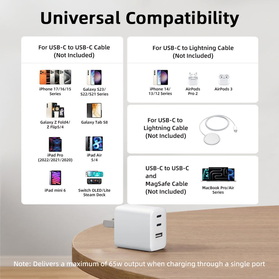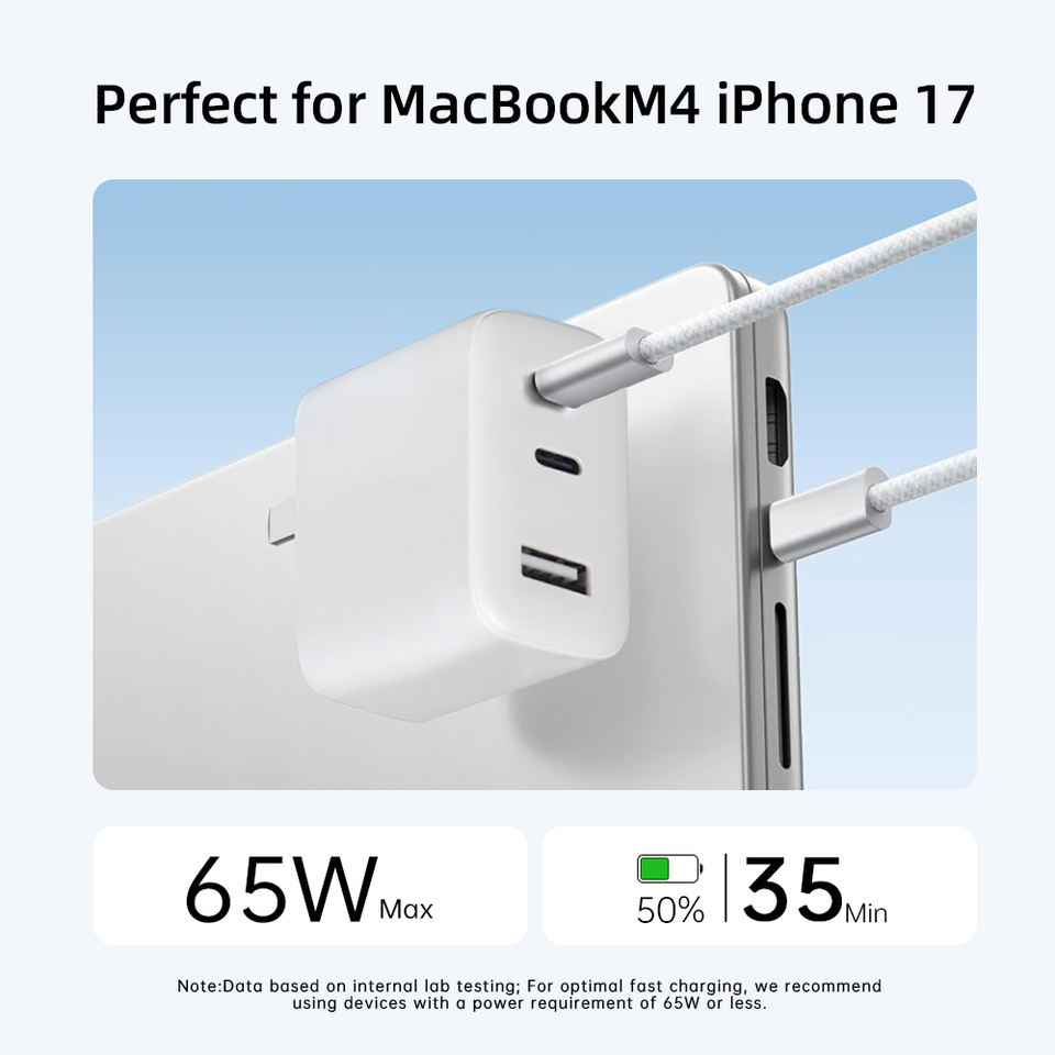 Cargador de Pared USB-C Tipo-C GaN QC3 PPS de Carga Súper Rápida PD de 65 W con Múltiples Puertos para iPhone, Mac, Samsung, Proveedor de Fábrica, Venta al por Mayor, OEM, ODM