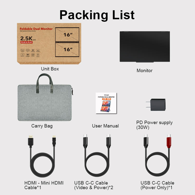 Monitor Portátil Super Plegable de 16 Pulgadas 2.5K IPS para Windows, Mac, Juegos, Negocios, USB C, Gran Venta