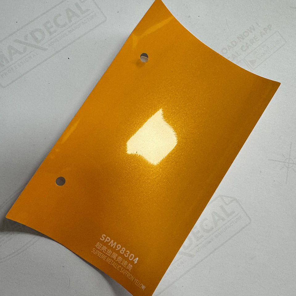 Envoltura de coche amarillo azafrán metálico superbrillante, vinilo autocurativo, diseño de leopardo antiarañazos, función de cambio de Color