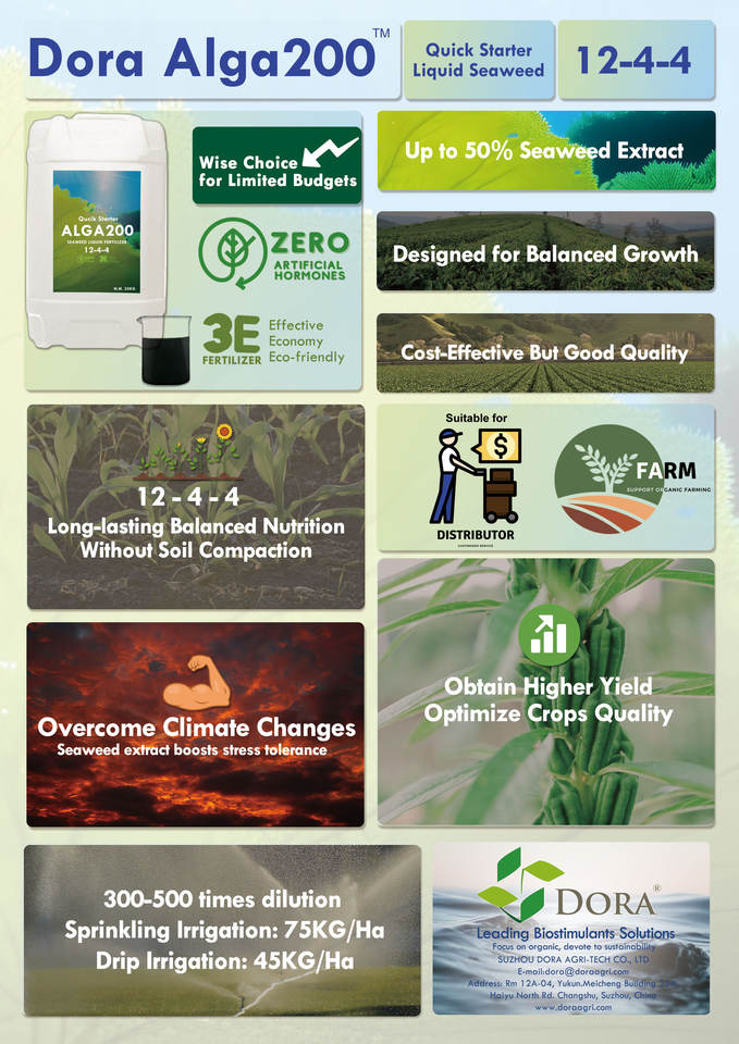 Fertilizante de micronutrientes NPK líquido de ácido húmico orgánico Super Grow 12-4-4 algas marinas para verduras y árboles de cacao