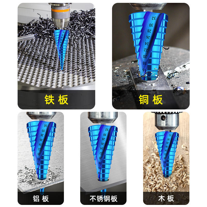 Broca Escalonada de Cobalto Azul Superdura, Cónica, para Metal y Madera, Diámetro de 6 mm, para Perforación de Acero