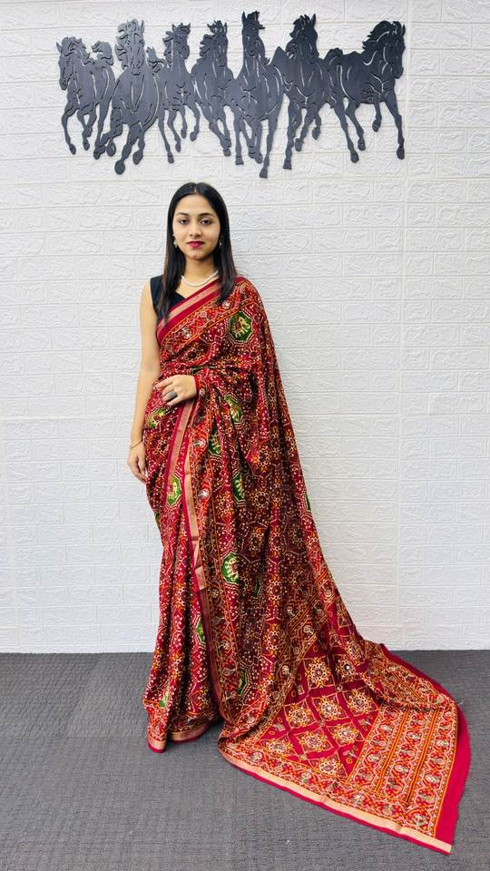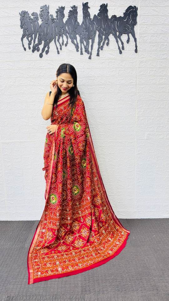 Sari de Algodón y Seda de Alta Calidad con Diseño Moderno y Elegante, Trabajo Aari con Espejo, Secado Rápido, Longitud 5.5 Metros