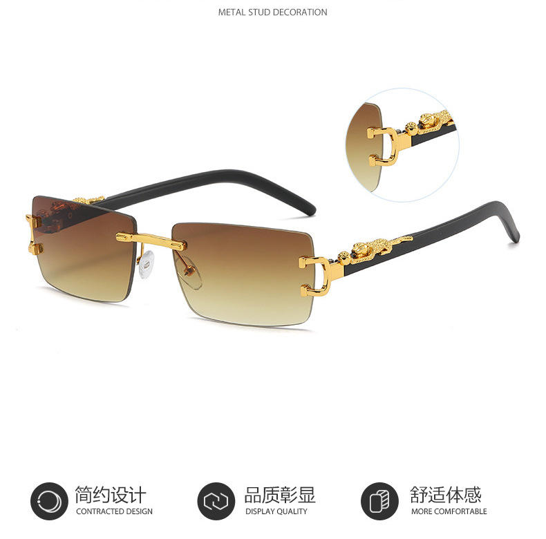 Gafas de Sol Rectangulares Modelo 666 Súper Populares, Gafas de Sol sin Montura con Lentes Tintadas Estilo Pantera, con Marco Metálico Blanco y Morado