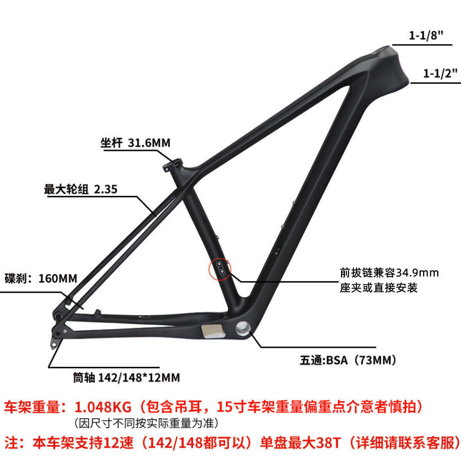 Cuadro de Bicicleta de Montaña de Carbono 2025, Cuadro MTB de Carbono 29er, Eje Pasante de 148*12 mm, 15/17/19 Pulgadas, Boost, Cableado Interno Completo, Cuadro 29er