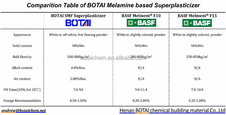 Superplastificante de alta gama, superplastificante de melamina sulfonada, superplastificante de melamina-formaldehído (SMF) para yeso