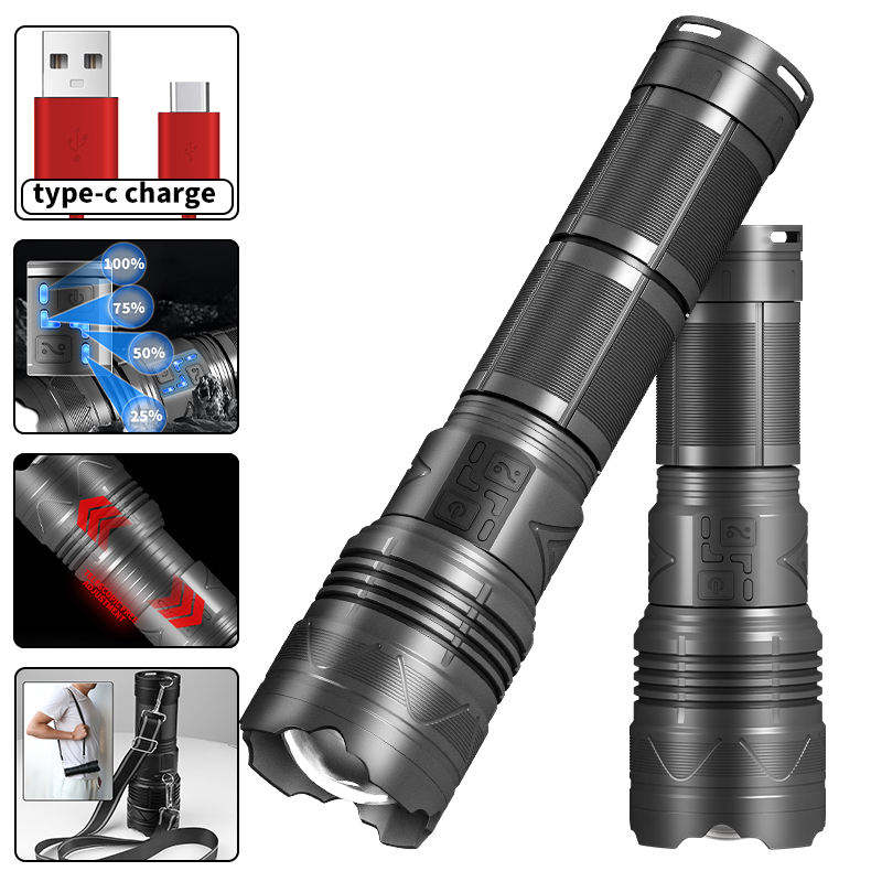 Linterna súper potente con correa para el hombro 30W LED 30000 lúmenes altos antorcha táctica impermeable USB linternas recargables