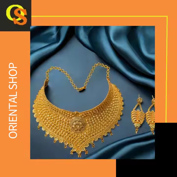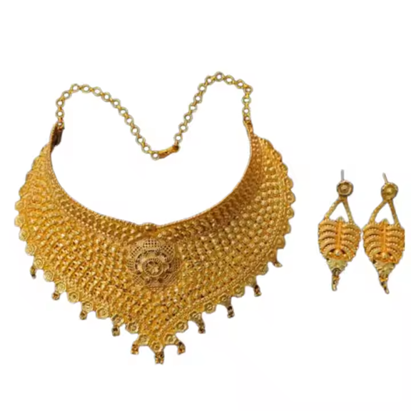 Juego de pendientes de collar de calidad súper premium con juego de pendientes de collar de estilo moderno chapado en oro de 22 quilates a la venta por exportadores