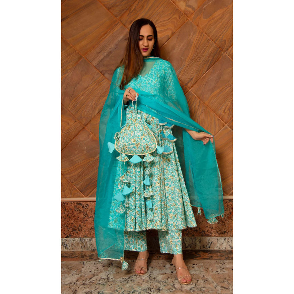 Nombre de los Productos:Conjunto Angrakha de algodón azul Noor