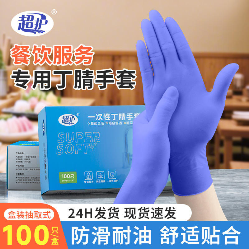 Guantes de nitrilo Super Protect de 9 pulgadas, morados, extra suaves, de grado alimenticio, desechables, para limpieza y uso en la cocina.