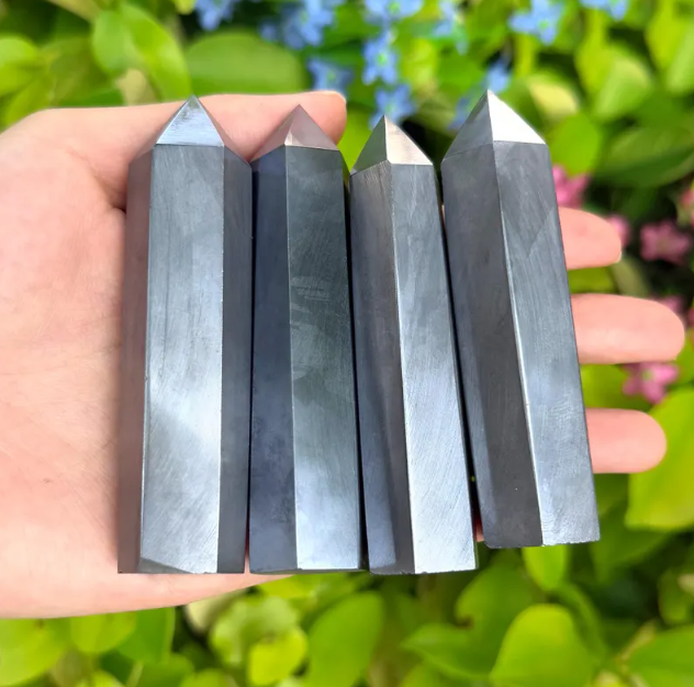 Torre de hematita de ágata de cristal Natural de gran calidad, 4 formas facetadas, artesanías de piedra semipreciosa puntiaguda