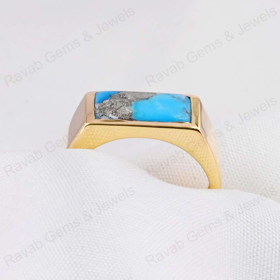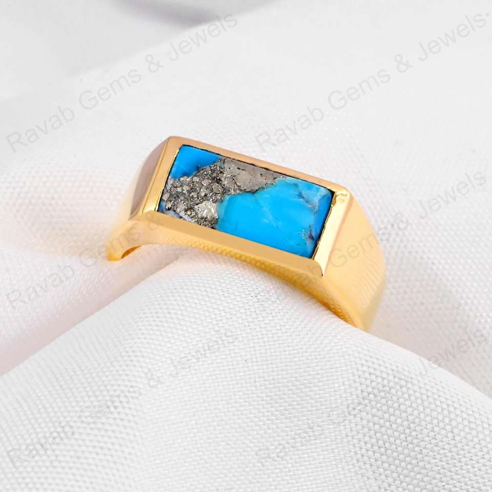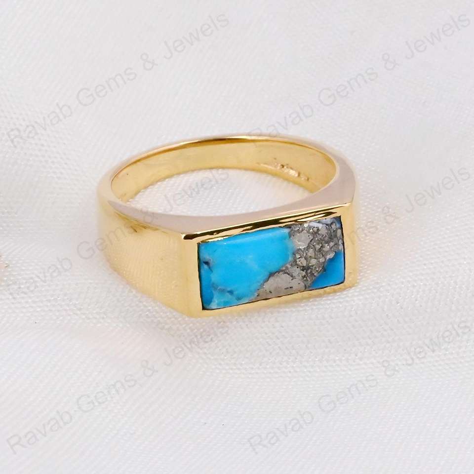 Product Name:925 Sterling Silver Natural Pyrite Turquoise Rectangle Ring