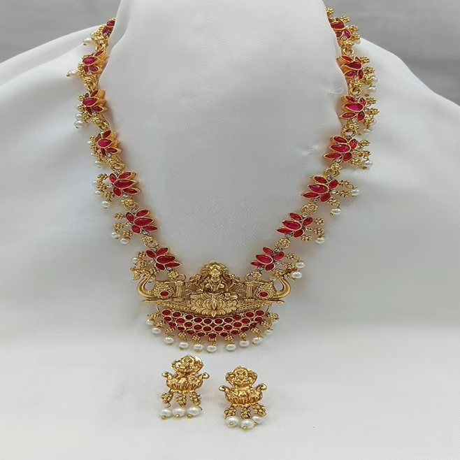 Products Name:Traditional Tempal Laxmi Necklace Jewellery Set
