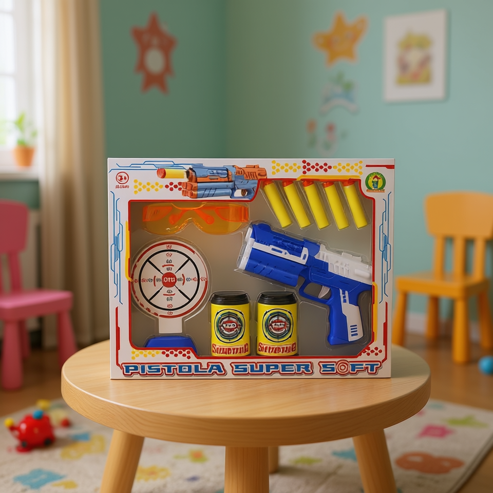 Juego de Pistola de Juguete Súper Suave con Objetivo y Dardos de 28x35 cm para Niños, Juego de Disparos
