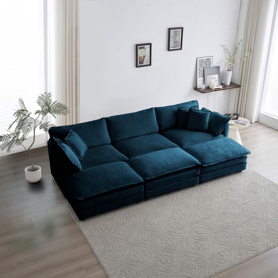 Sofá Seccional Modular Reversible Súper Suave en Forma de U para 6 Personas, 3 Otomanas, 3 Cojines Decorativos, Asiento Profundo y Cómodo para Sala de Estar