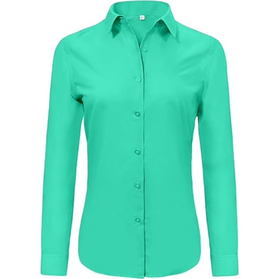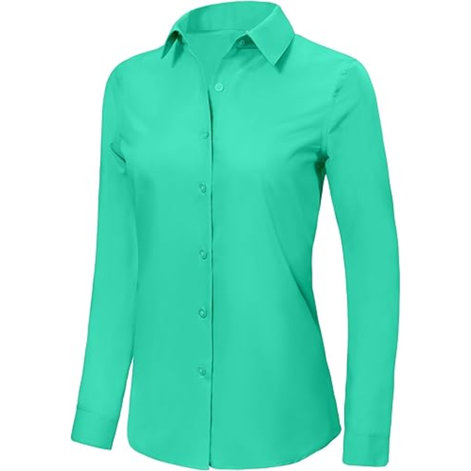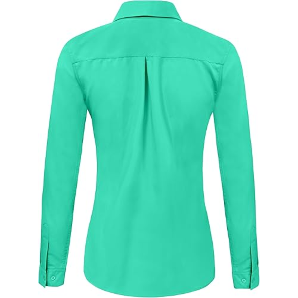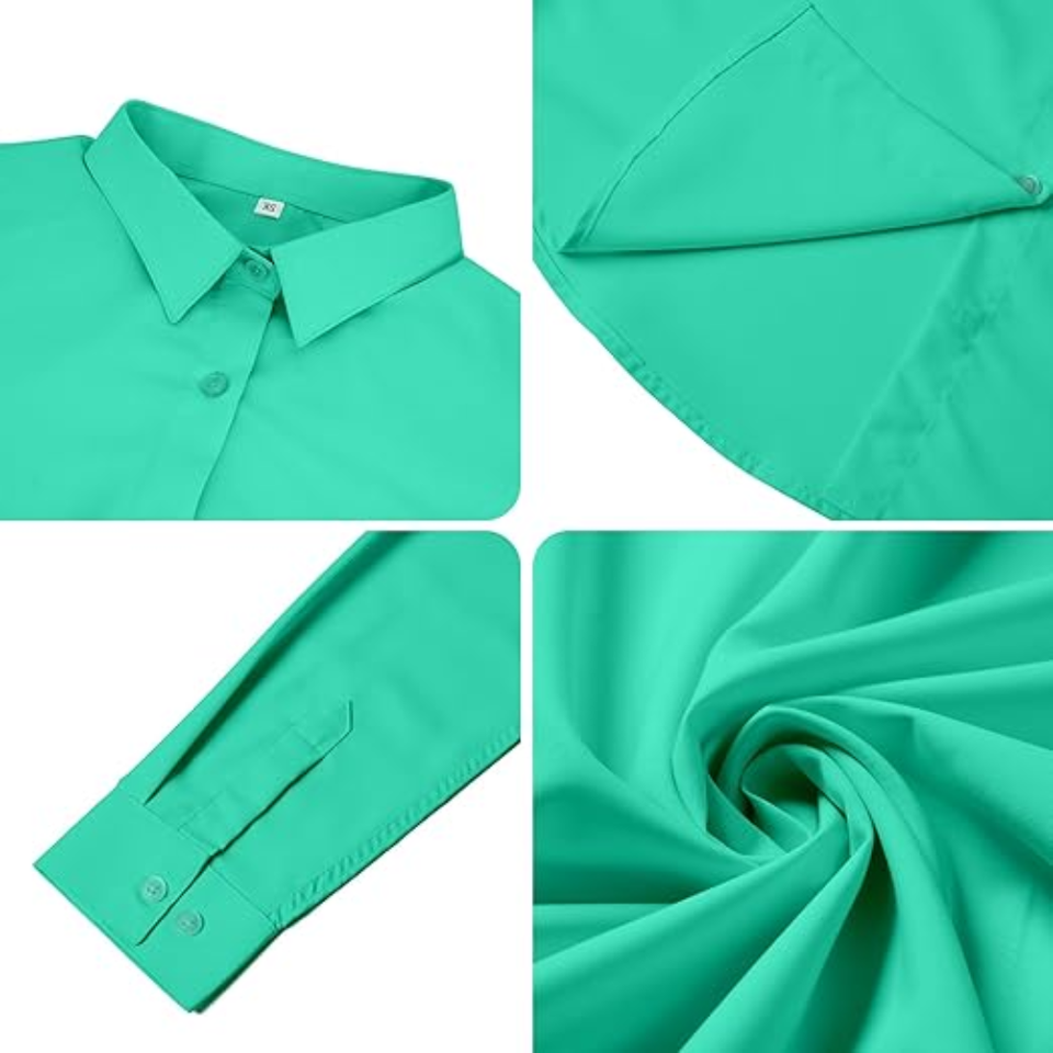 Blusas Formales de Trabajo para Mujer, Manga Larga, Sólidas, con Botones, Cuello Cuadrado, Popelina Súper Suave, Transpirable y Sin Arrugas