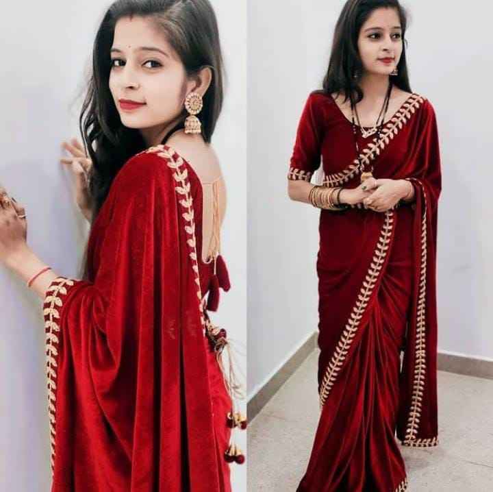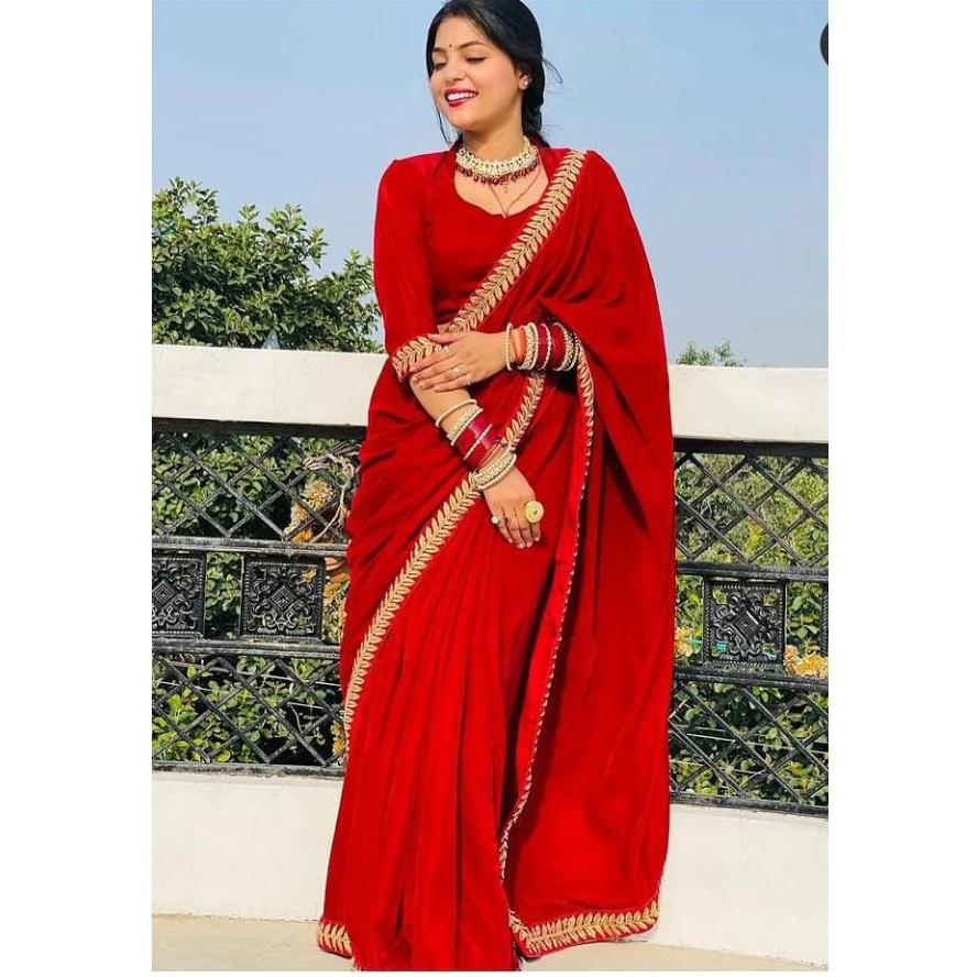 Super elegante diseñador boda fiesta desgaste puro terciopelo tela sari con bordado encaje trabajo mayorista proveedor de la India