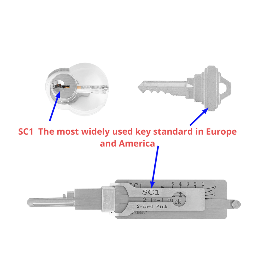 Super Tools 2-en-1 Right Lock Pick Side SC1 Silver Durable Blank Keys Box Embalaje para EE. UU. Market Locksmith Supplies Universal