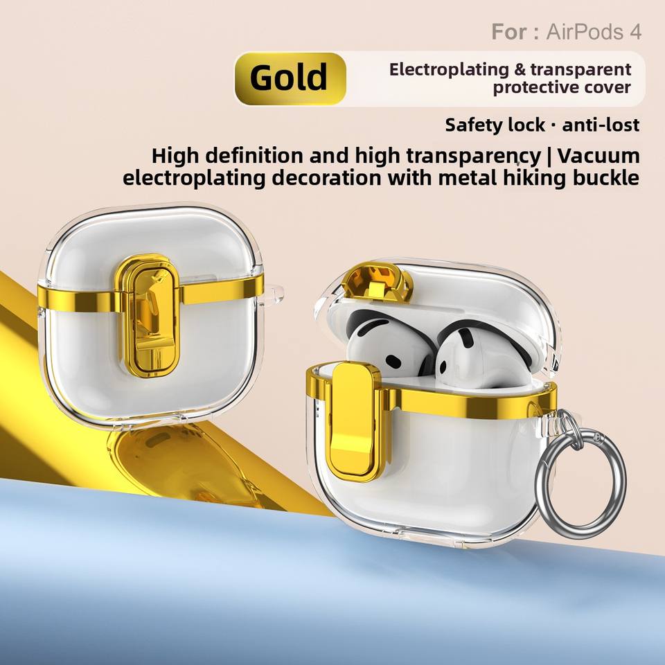 Carcasa protectora de TPU suave supertransparente para AirPods 4 Pro 2, tapa galvanizada, cubierta de auriculares LOST con hebilla de Metal