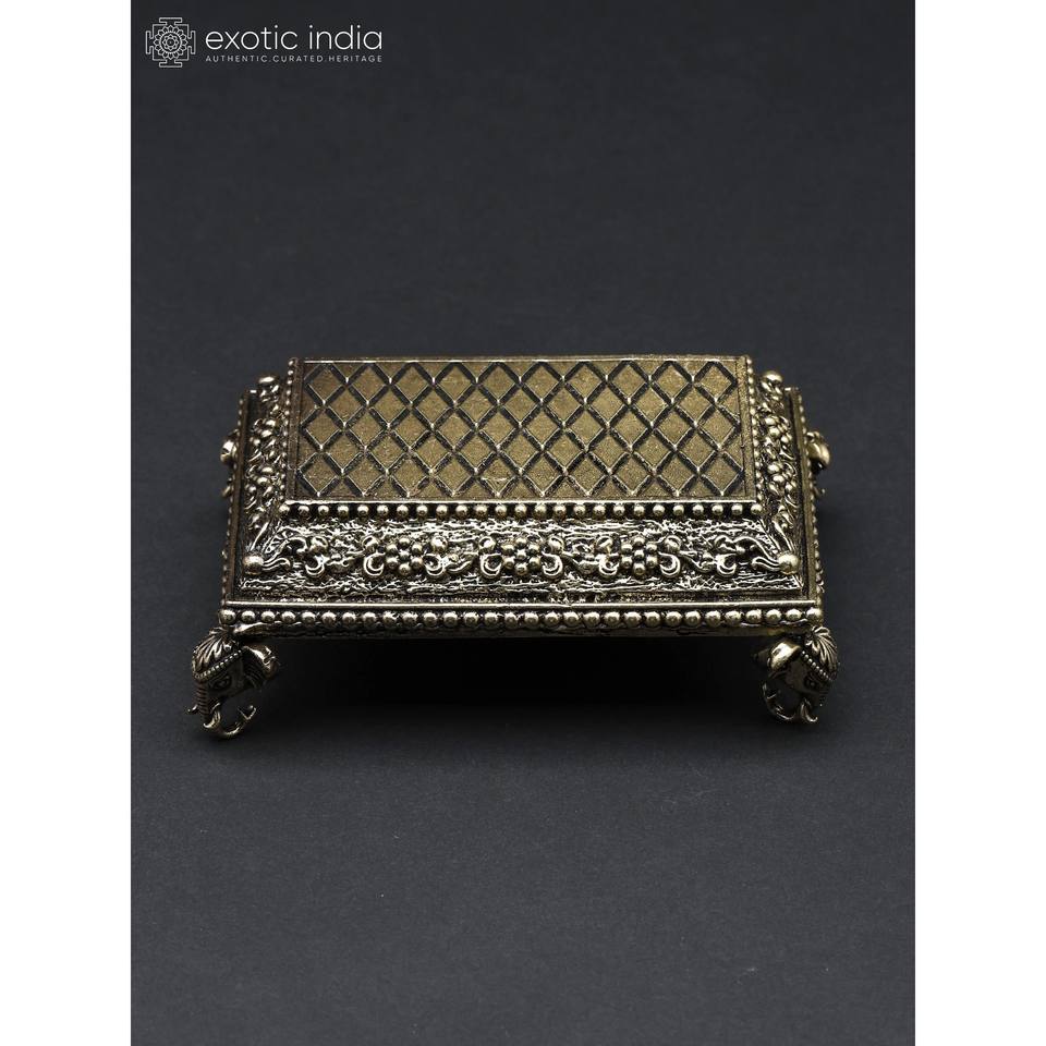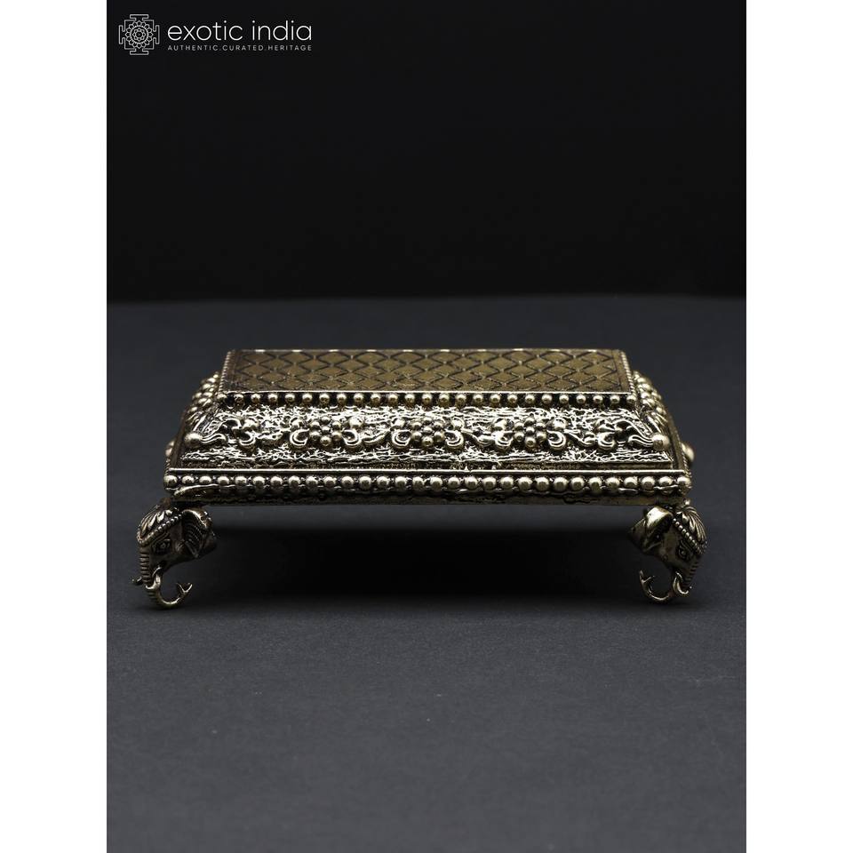 Chowki de diseño de elefante pequeño superfino de 4 pulgadas (Pedestal) en latón hecho a mano en la India para decoración del hogar