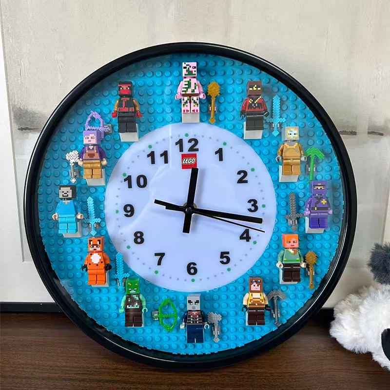 Reloj de Pared de Bloques de Construcción de Minifiguras de Superhéroes - Reloj Decorativo Estilo Lego 3D para Dormitorio Infantil y Decoración del Hogar
