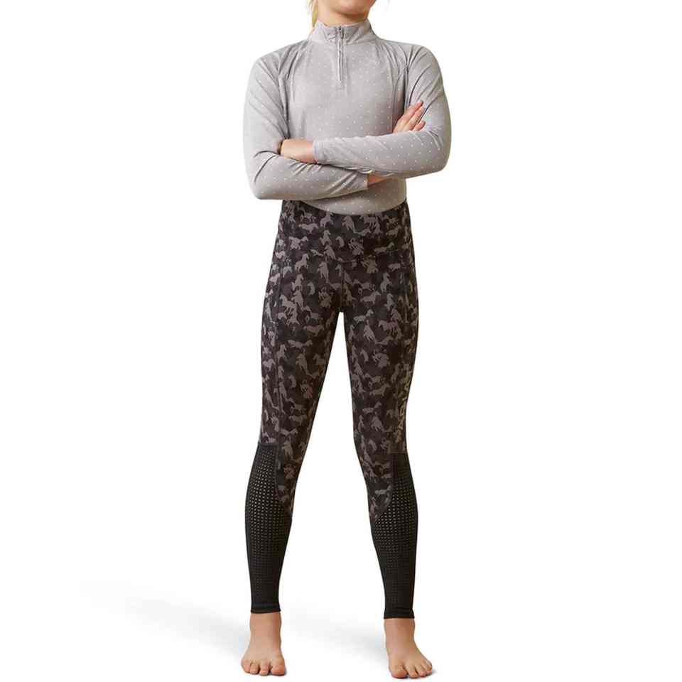 Pantalones de equitación con agarre superior y bolsillos con cremallera, pantalones elásticos para competición, pantalones de equitación con estampado.