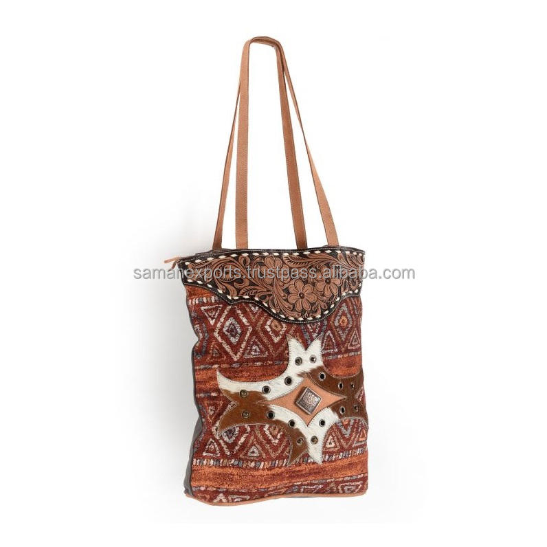 Calidad Superior estilo bohemio Handblock alfombra bolso de mano lona cuero herramientas parche para el cabello Correa Lisa cremallera borla directa