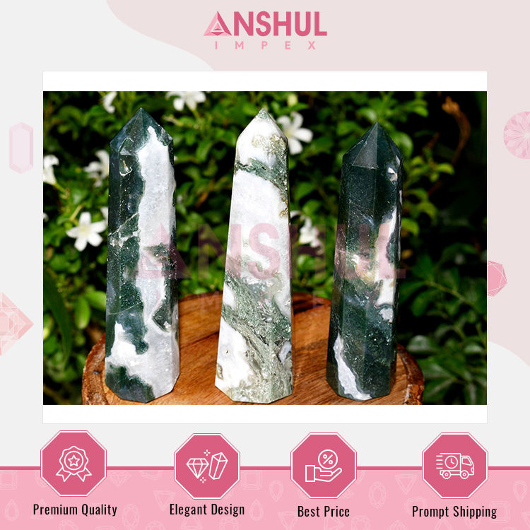 Nombre del producto:Moss Agate Crystal Towers/Obelisco