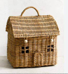 Cesta de almacenamiento con forma de Casa de ratán Natural de calidad Superior con ruedas, ventana y puerta para habitación de niños, guardería