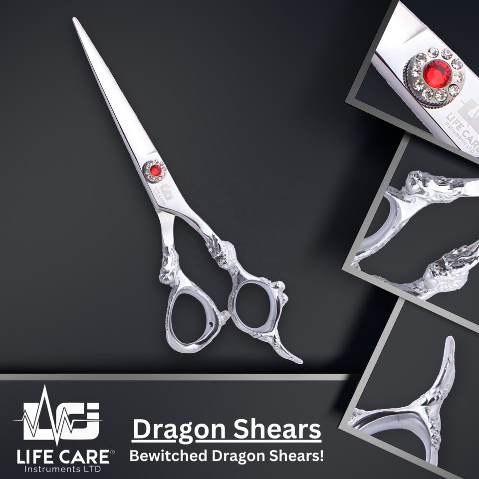 Dragón mango pelo corte tijera tornillo ajustable con gema rojaCaracterística