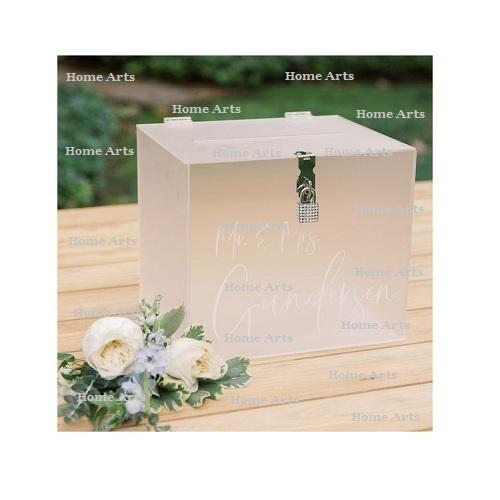 Caja de sobre de forma cuadrada de calidad Superior, caja de dinero de acrílico hecha a mano con cerradura para caja de tarjetas de almacenamiento de boda